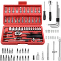 - 🔹 Conjunto completo: 46 piezas con vasos, trinquete reversible y extensiones.