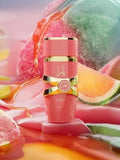 La apertura combina Grosella Negra y Mandarina Verde, creando una sensación fresca, juvenil y vibrante. En el corazón, las notas de Strawberry Fizz Candy y Gardenia aportan un toque cremoso, femenino y sofisticado.